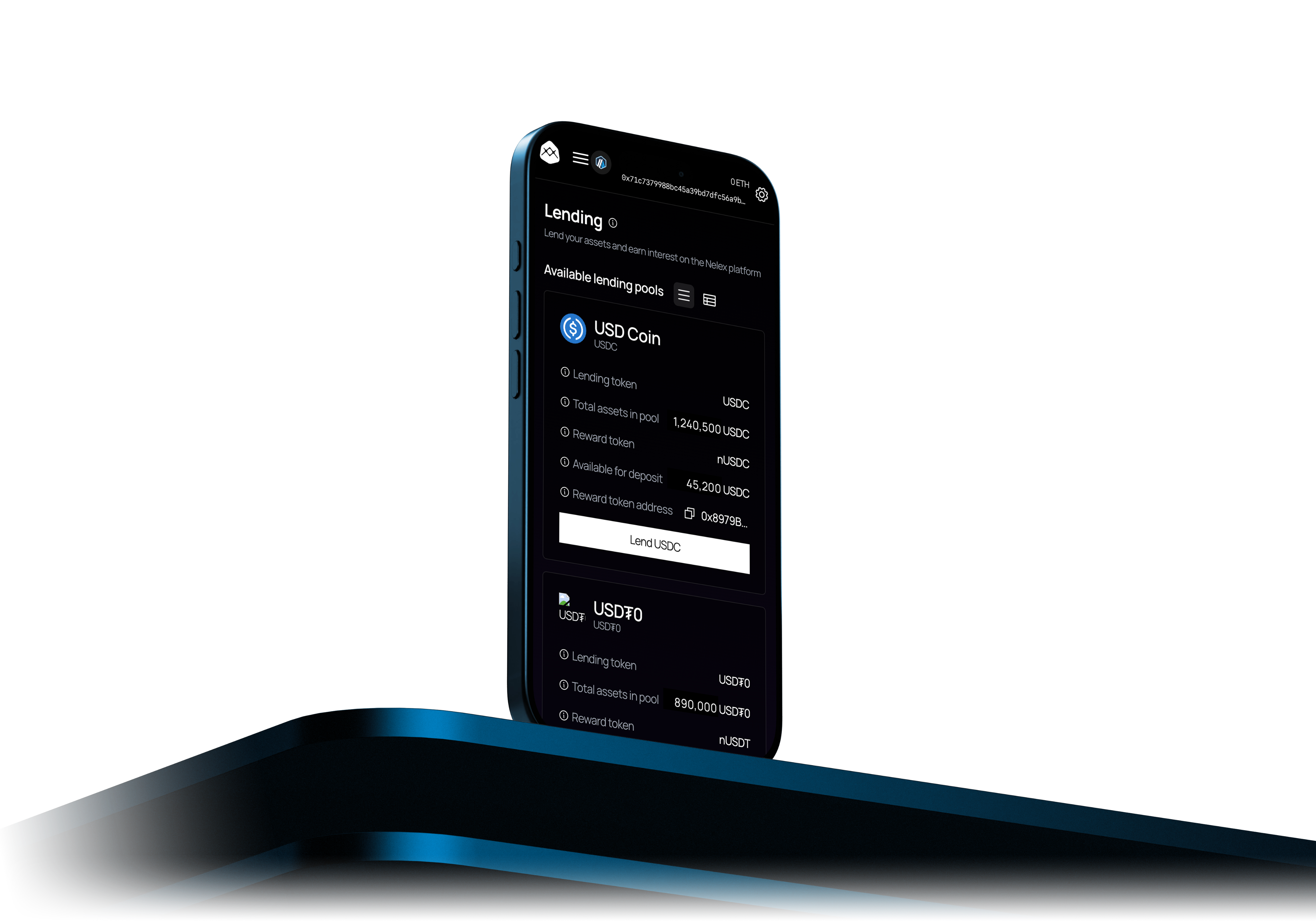 Supply your crypto assets to NELX lending pools and earn competitive yields. Your funds help power decentralized finance while generating passive income.